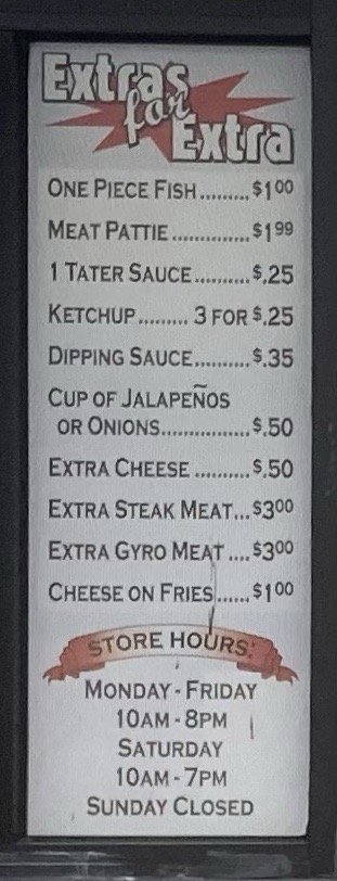 piece and fries and tater sauce additional pieces $.